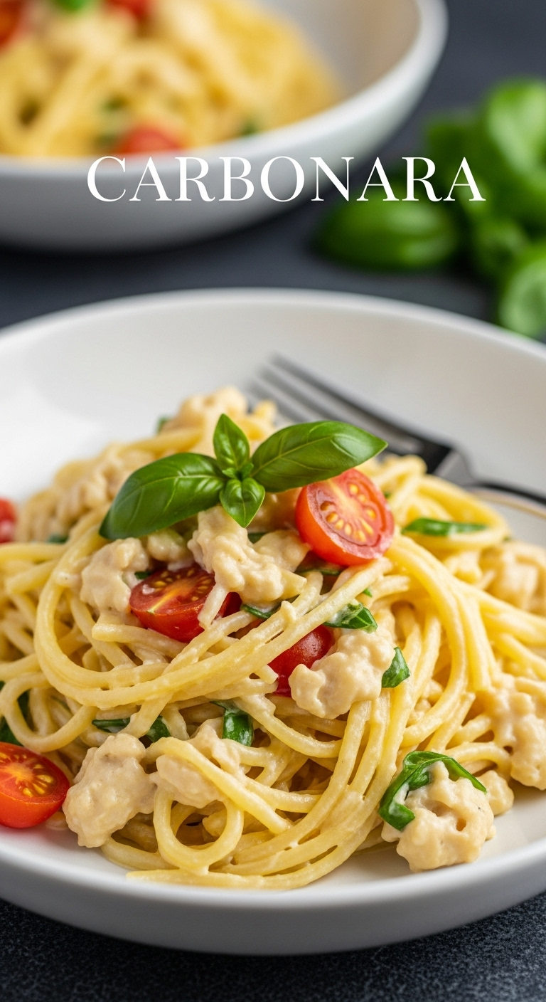 Serve carbonara plated immediately, garnished with an extra dusting of Pecorino Romano and a crack of fresh black pepper. A few delicate basil leaves add an unexpected herbal brightness. Pair with a crisp Italian white wine and a simple arugula salad with lemon vinaigrette for balance. For an authentic touch, serve with crusty Italian bread to sop up every creamy strand.